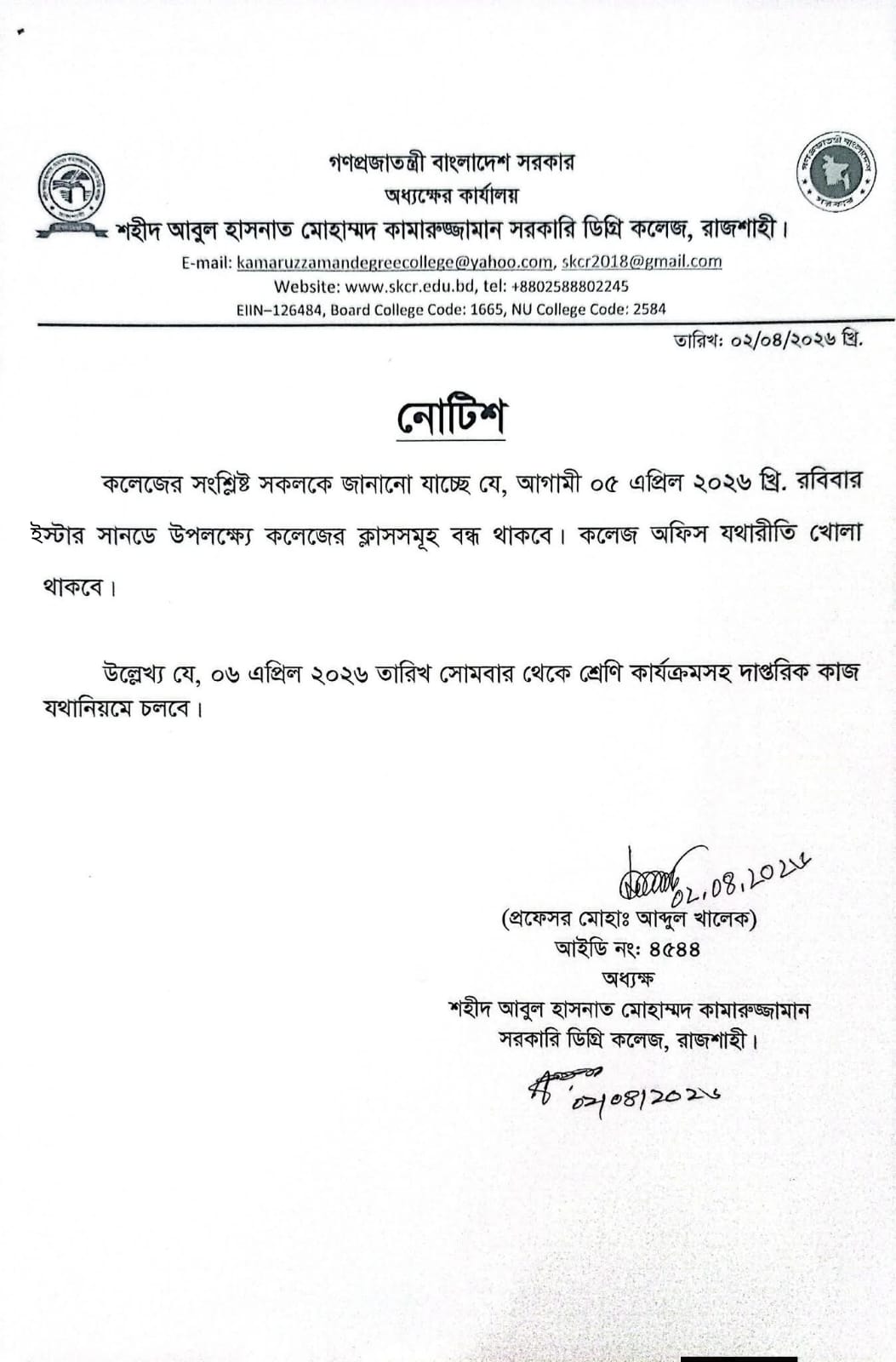 ইস্টার সানডে উপলক্ষে ক্লাস ছুটির নোটিশ
